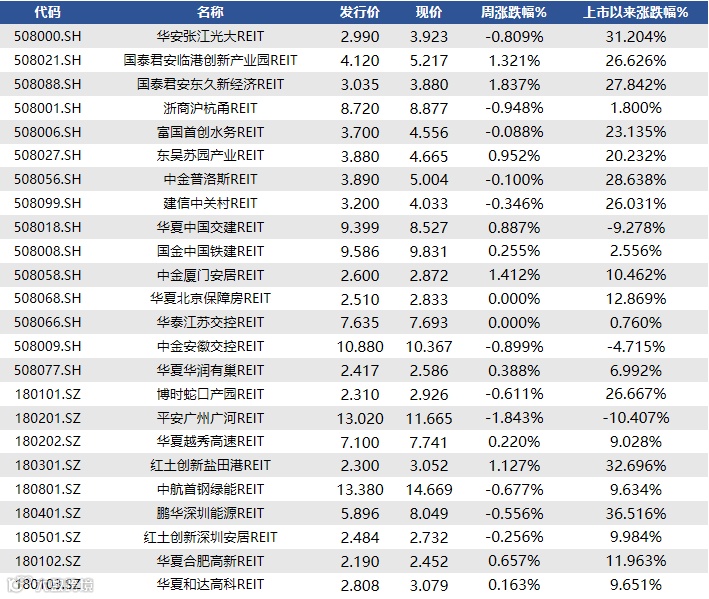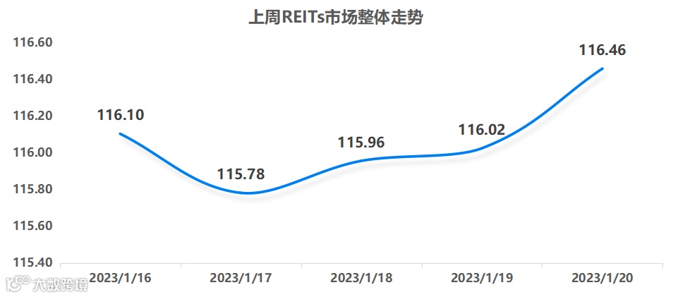 年前一周REITs走势下探后稳步回升,一周走势情况如下图所示: