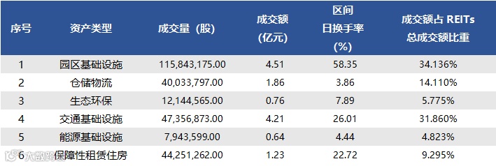各资产类型的交易情况如下表所示: