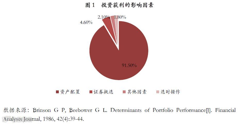 研究表明,在投资获利的归因分析中,90%以上收益是由资产配置决定的,资产配置是长期投资成功的关键性因素。同时,在众多影响投资收益的因素中,证券选择、市场时机等都是不可控的,只有资产配置是投资者唯一可控的因素。因此,为了长期拿住向上的资产,我们第一步要做的就是资产配置。
