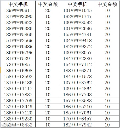 3、中奖金额将于每周五以话费的形式发放到您的中奖手机,届时敬请留意短信