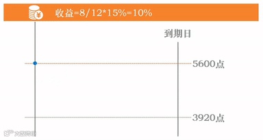 假设中证500指数在某个观察日跌破敲入价格3920点,但在第8个月的观察日又反弹回敲出价格5600点,那么投资者仍将提前结束持有,获得「本金」+「15%的年化收益」。