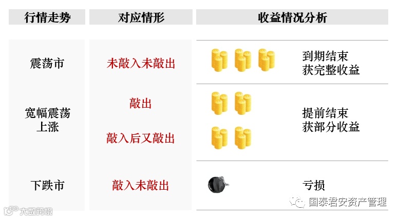小君点评:好像抽中了上上签有没有!确实,雪球结构最适合的就是震荡市,哪怕是轻微熊市,仍有可能不损失本金,并赚取一定的投资收益(即年化票面利率收益)。