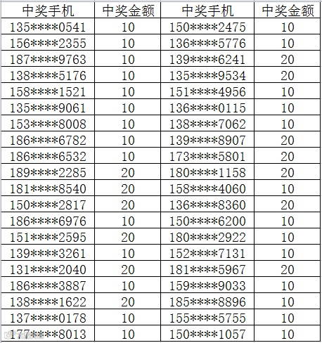 3、中奖金额将于每周五以话费的形式发放到您的中奖手机,届时敬请留意短信