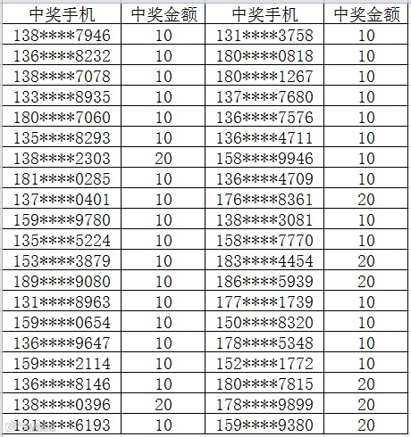 3、中奖金额将于每周五以话费的形式发放到您的中奖手机,届时敬请留意短信