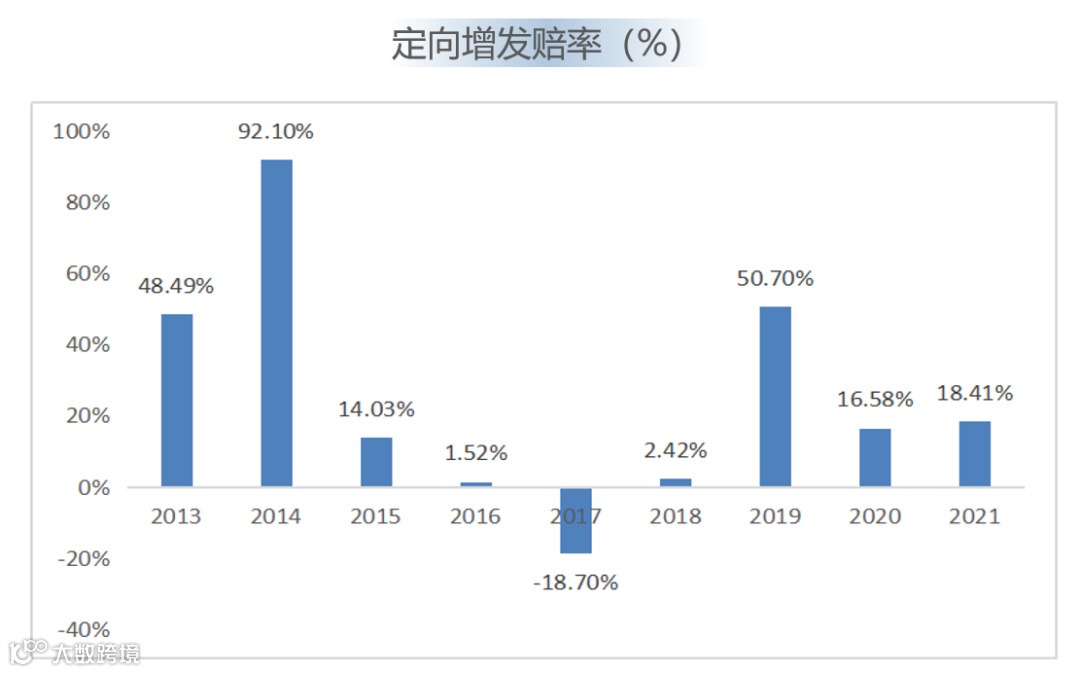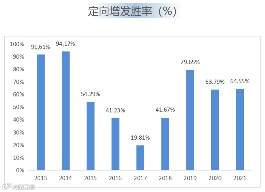 注:胜率=获正收益的定增数量/定增总数量;数据统计2013.01.01-2022.06.30解禁的定向增发项目,并剔除只向大股东增发的案例。
