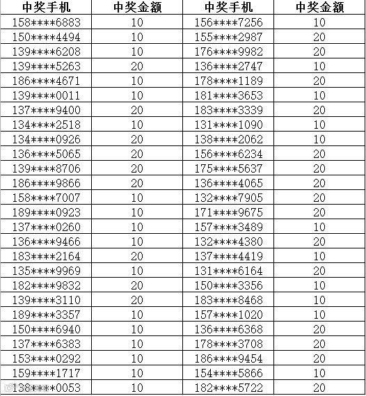 3、中奖金额将于每周五以话费的形式发放到您的中奖手机,届时敬请留意短信