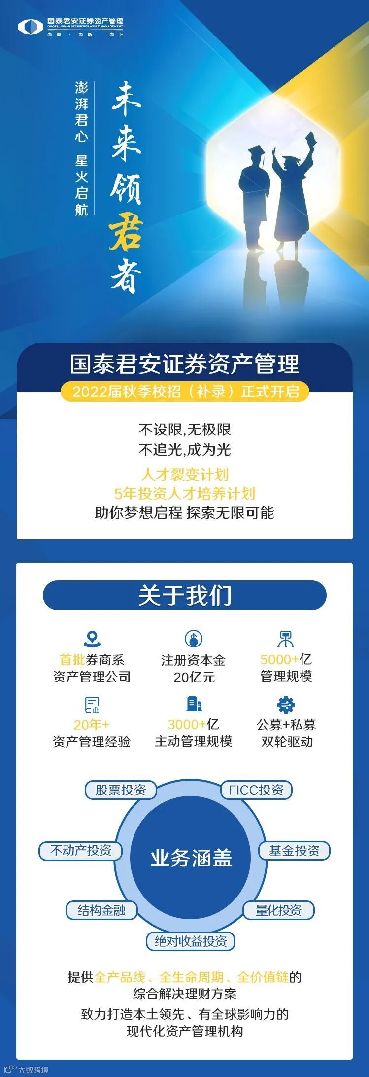 在上一期的分享中,小君介绍了几位前辈如何在国君资管完成从应届生到投资经理的华丽蜕变(未来领君者 | 是什么让“星火”成为“炬火”),相信大家都对国泰君安资管的校招培养体系、平台资源、工作日常等充满了好奇,究竟是怎样的土壤使得每一个应届生都能茁壮成长?