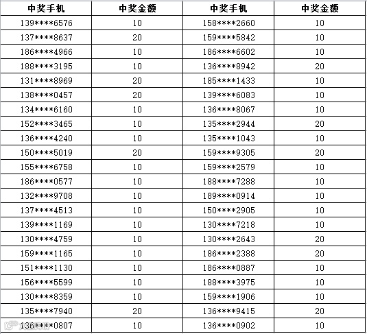 3、中奖金额将于每周五以话费的形式发放到您的中奖手机,届时敬请留意短信