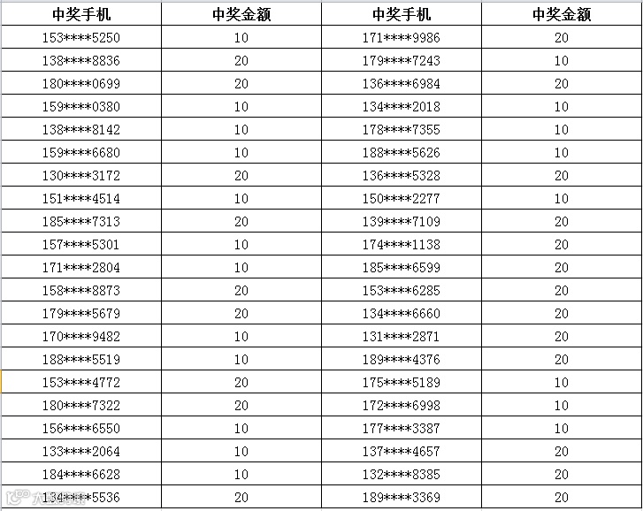 3、中奖金额将于每周五以话费的形式发放到您的中奖手机,届时敬请留意短信