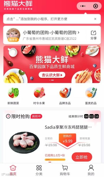 去年社区团购的兴起,连带着已经有些陷入低迷的生鲜市场又重新火热了起来,连锁零售商不是没有察觉到危机。而此前生鲜电商对社区最后一公里的抢占也对连锁零售商的市场销路造成了不小的影响,专注于线下的业务似乎行不通了。为此,百果园开始着手布局线上业务,“熊猫大仙”微信小程序的上线,就是公司入局社区团购的第一步。