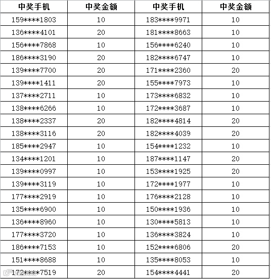 3、中奖金额将于每周五以话费的形式发放到您的中奖手机,届时敬请留意短信
