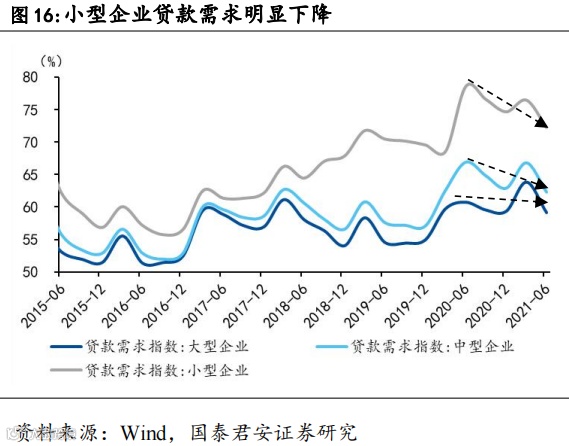 基建、批发零售、地产贷款需求指数分别降低5.2、4.9、5.0个百分点,其中房地产贷款需求指数已经降至收缩区间。