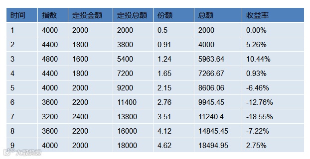 如今兴起的智能定投也是这个原理,根据公式和涨幅大小,合理地调整定投金额,以使自己的成本摊平地更低,获得更高的收益。