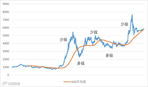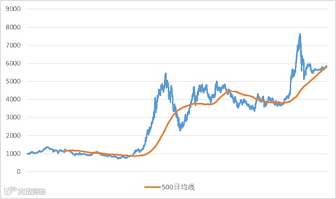 我们可以根据前一日收盘价偏离500日均线的幅度来调整今日的定投额。