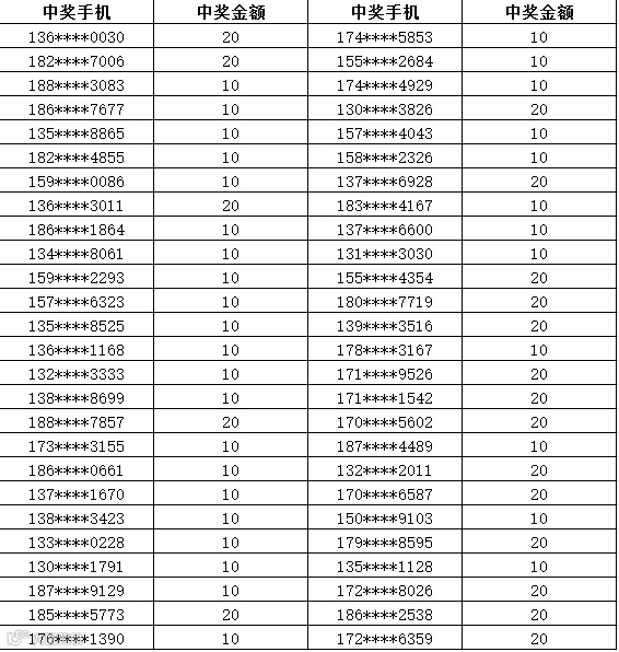 3、中奖金额将于每周五以话费的形式发放到您的中奖手机,届时敬请留意短信