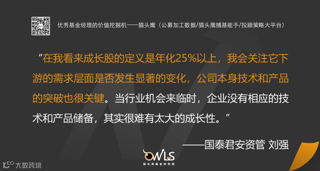 在选股方法上,刘强认为挖掘成长股的核心在于发现产业的变化,这会带来企业发展的空间。