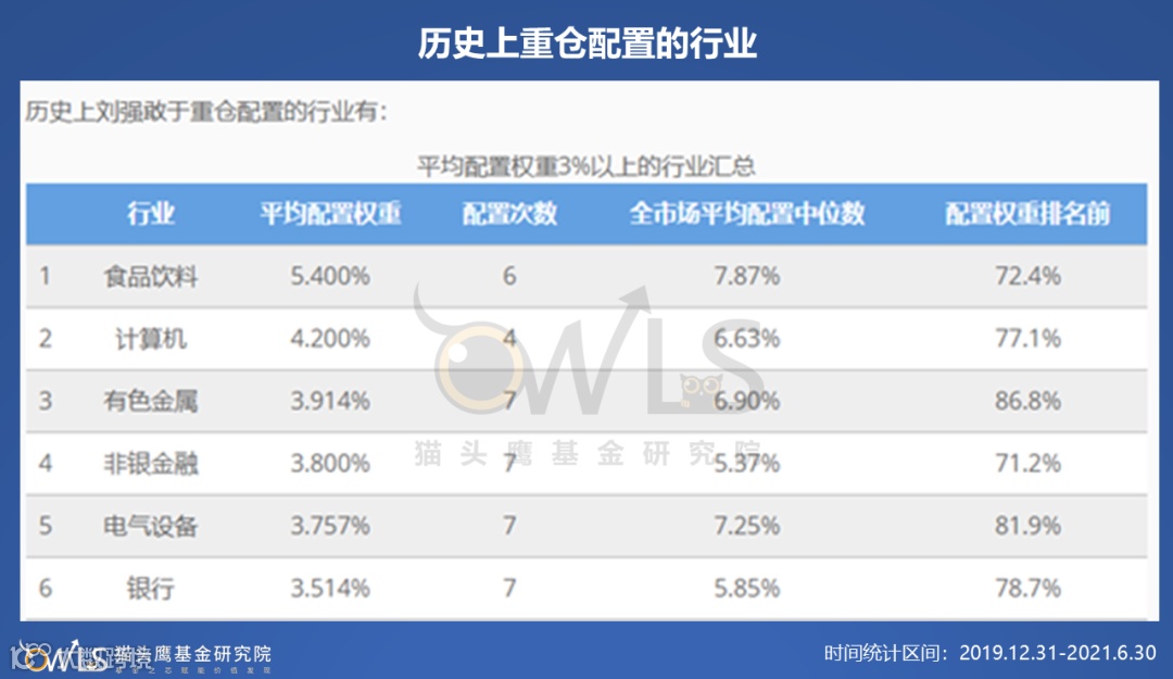 刘强会对照基准指数,所有的行业相对于指数的高配低配他都会关注,因为作为研究总监,他统领着各个行业的研究员。