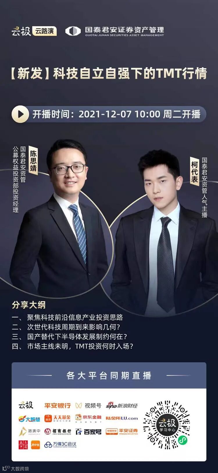 12月7日(星期二)国泰君安资管直播间,国泰君安资管公募权益投资部投资经理陈思靖将为大家倾情解答,速来围观!