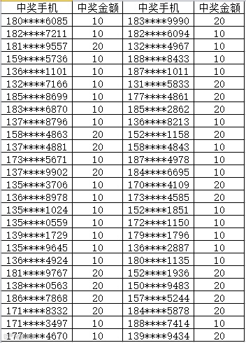 3、中奖金额将于每周五以话费的形式发放到您的中奖手机,届时敬请留意短信