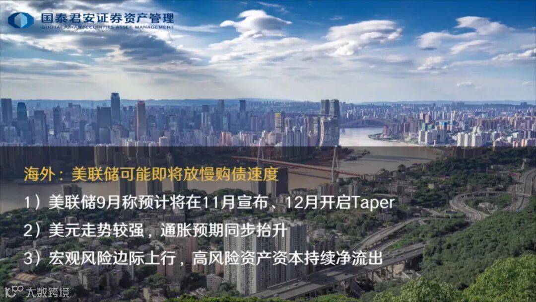 美联储9月FOMC会议称可能很快放慢购债步伐,预计将在11月宣布、12月开启Taper。9月中旬以来,美元走势较强,通胀的预期也同步在提升。大类资产隐含的宏观风险边际上行,高风险资产资本持续净流出。