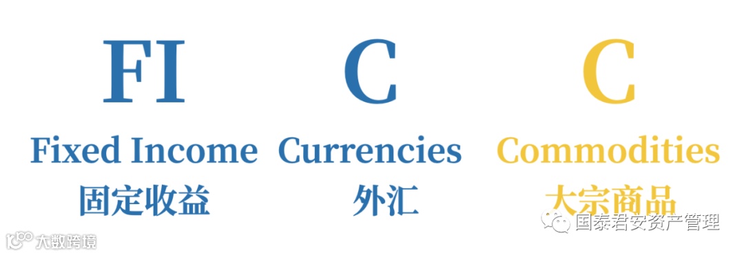 FICC (Fixed income、Currencies & Commodities) 业务资产种类主要包括固定收益证券、外汇和大宗商品及相关衍生品。