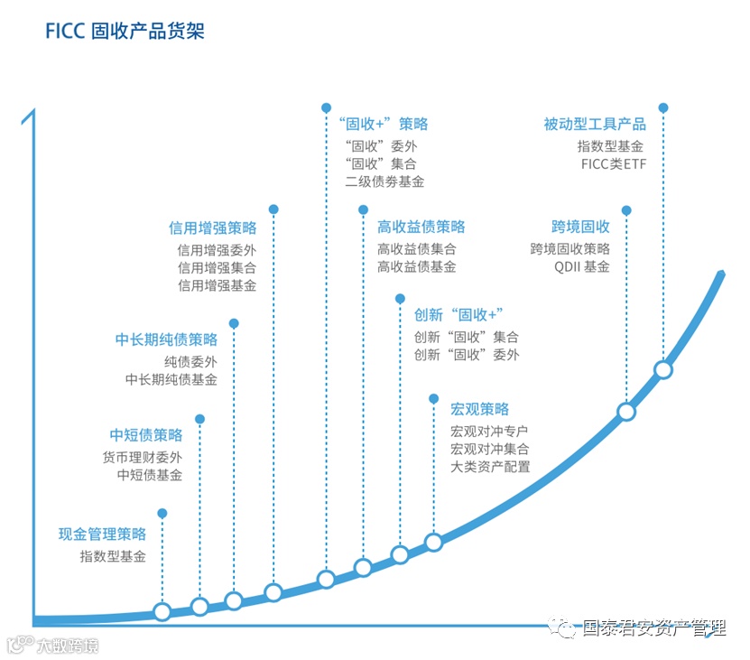 国泰君安资管FICC多资产业务团队结合后资管新规时代财富管理和资产管理行业发展的必然要求,进一步丰富了FICC资管产品线,以固定收益投资为“底”,以其他类型的资产或者策略为增厚,进行适时的合理资产配置。