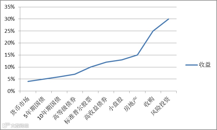 “如果我能从股票上赚到10%的收益,那么我需要15%的收益率才能接受缺乏流动性和确定性的房地产。如果是进行收购,收益率要达到25%……30%的收益率才能诱使我去进行风险投资,因为风险投资的成功率非常低。”