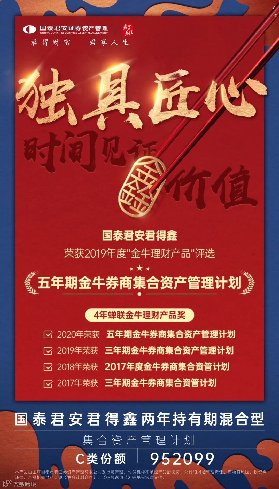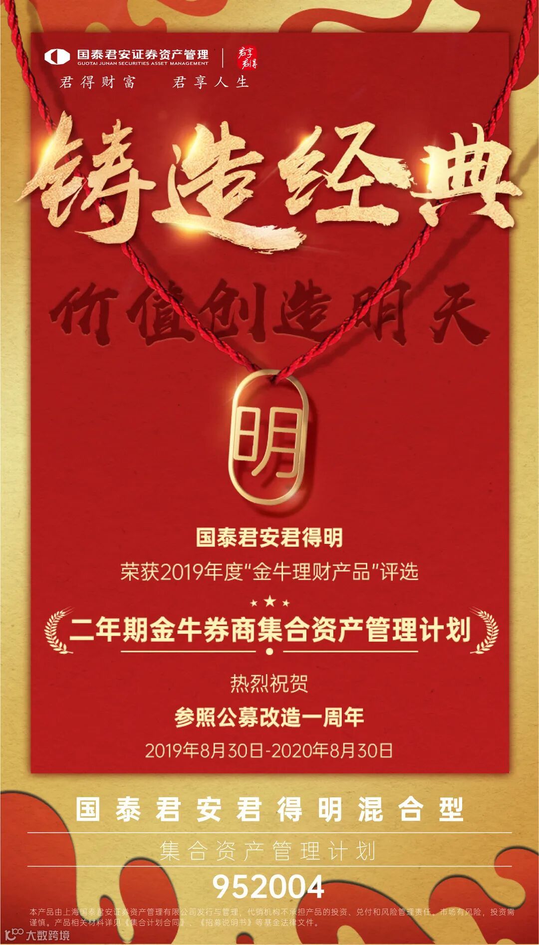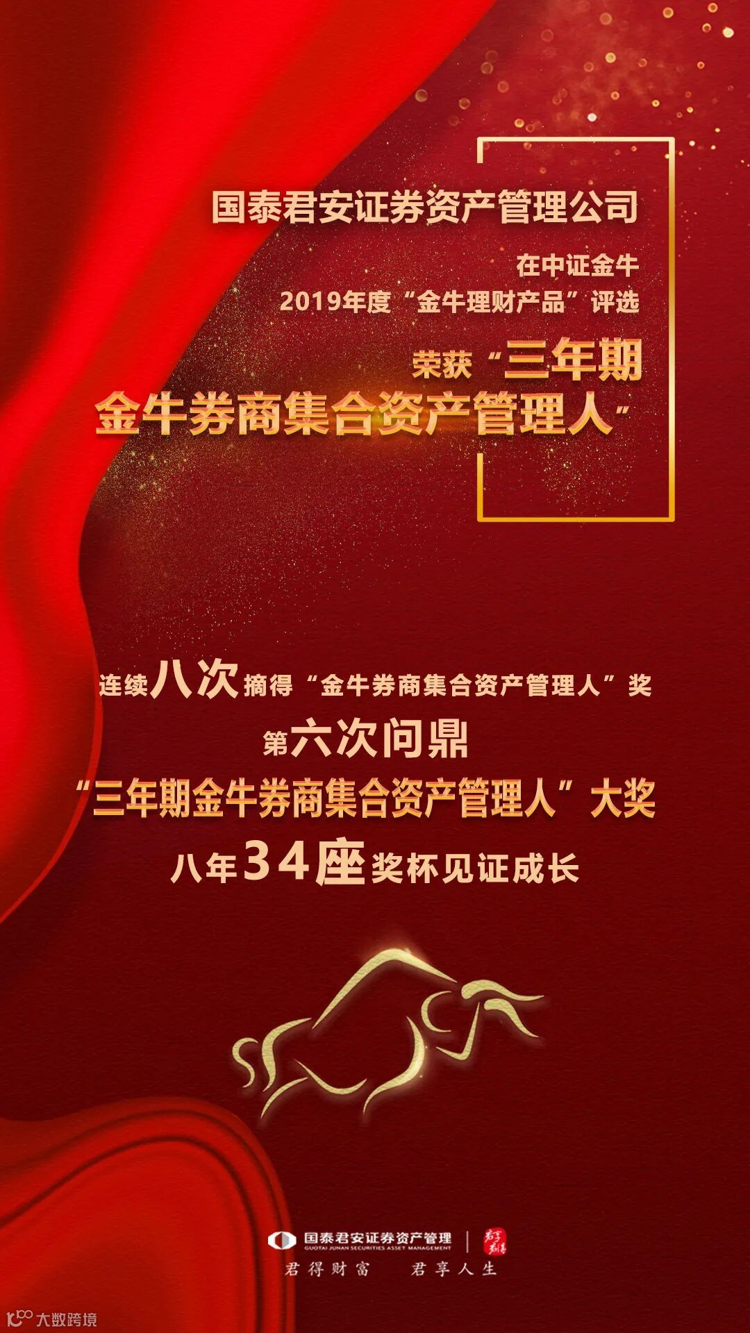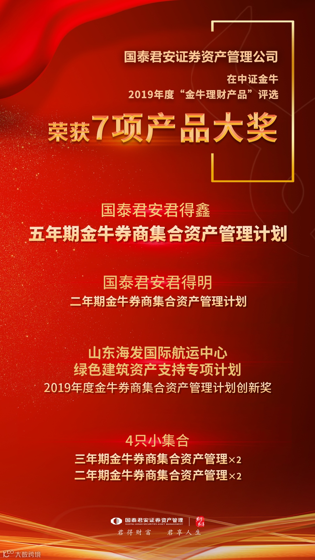 近日,中证金牛2019年度“金牛理财产品”评选结果正式揭晓,国泰君安证券资产管理公司包揽8座奖杯彰显实力。其中公司荣膺“三年期金牛券商集合资产管理人”称号;旗下7只产品斩获各类“金牛理财产品”奖,是获奖数量最多的券商资管机构之一。