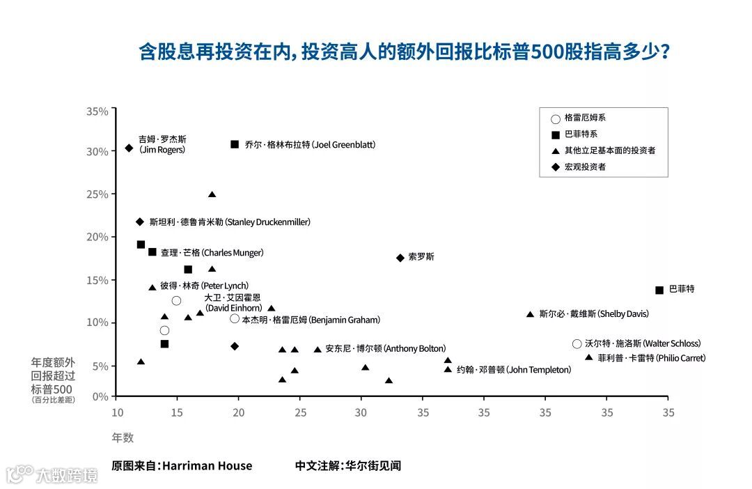 如果去看投资大师的长期回报收益率,可以发现他们平均追溯业绩在30年左右,最少的也有10年以上的可追溯业绩,最长的就是巴菲特,超过了55年的可追溯业绩。