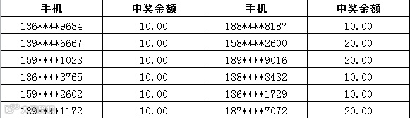 3、中奖金额将于每周五以话费的形式发放到您的中奖手机,届时敬请留意短信