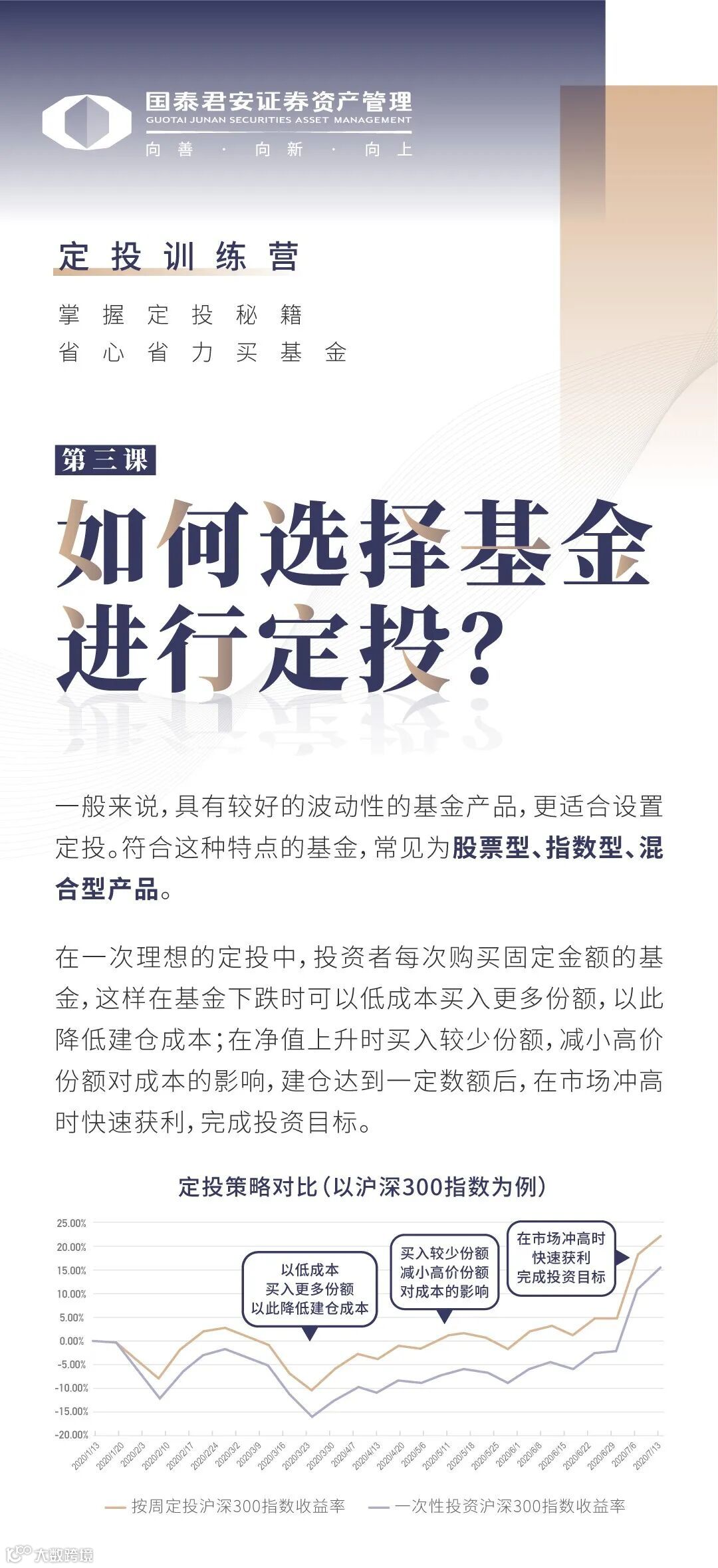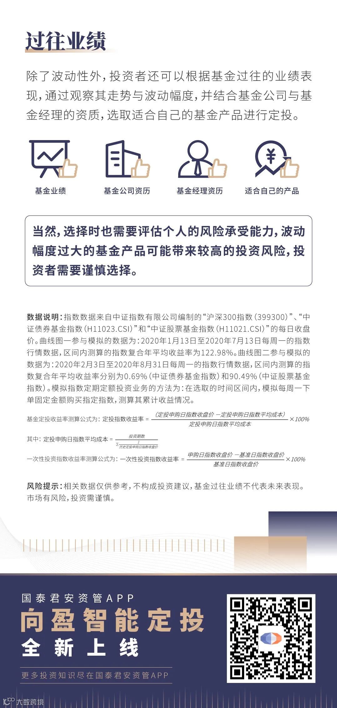 市场有风险,投资需谨慎。国泰君安资管承诺以恪尽职守、诚实信用、谨慎勤勉的原则管理和运用产品资产,但不保证一定盈利,也不保证最低收益。国泰君安资管旗下产品的过往业绩不构成对产品未来业绩表现的保证。投资者在进行投资前应当认真阅读产品合同、招募说明书、产品资料概要等信息披露文件,自主做出投资决策,自行承担投资风险。