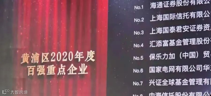 上海国泰君安证券资产管理有限公司在本届表彰会上荣获“上海市黄浦区2020年度百强重点企业”第3位。