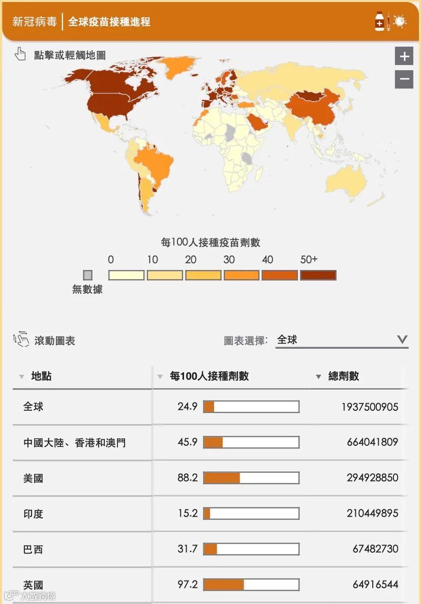 根据BBC News提供的数据,印度、巴西每百人接种新冠疫苗剂数分别为15.2剂、31.7剂,接种率远低于美国(88.2剂每百人)、英国(97.2剂每百人)等发达国家。