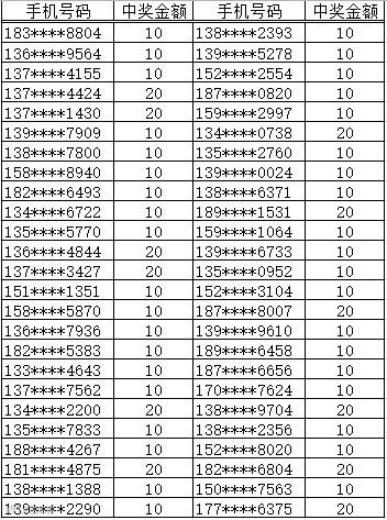 3、中奖金额将于每周五以话费的形式发放到您的中奖手机,届时敬请留意短信