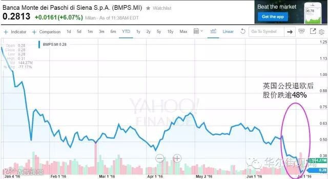 由于坏账问题引发投资者担忧,该行股价在英国公投退欧后,已累计跌逾48%,不断刷新历史新低。2007年7月,西雅那股价曾一度高达93欧元,而如今只有可怜的0.28欧元,缩水99.7%。