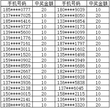 3、中奖金额将于每周五以话费的形式发放到您的中奖手机,届时敬请留意短信