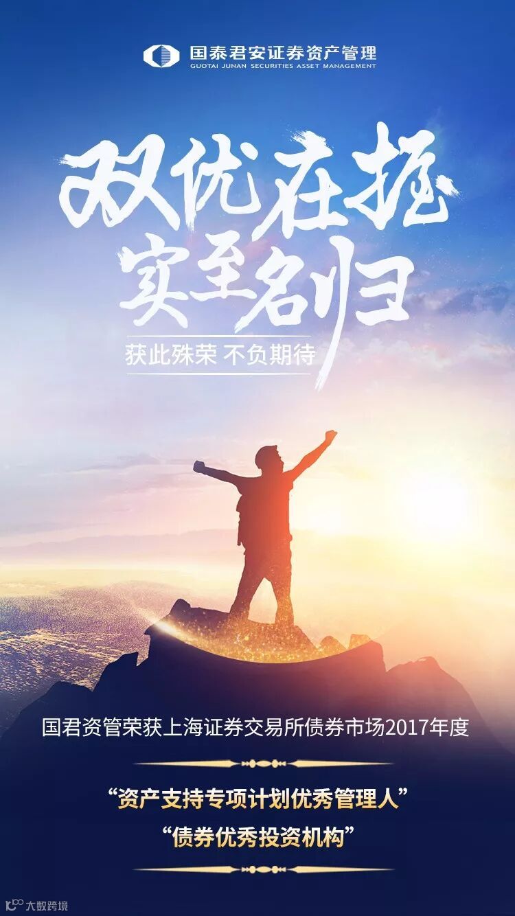 此次有幸获得上交所2017年度 “ 资产支持专项计划优秀管理人”这一含金量颇高的奖项,体现了监管机构及市场各方对国君资管ABS业务的认可和支持。