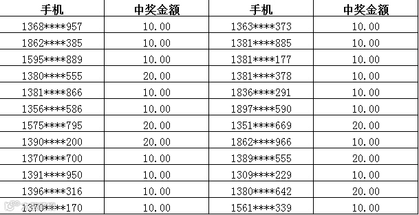 3、中奖金额将于每周五以话费的形式发放到您的中奖手机,届时敬请留意短信