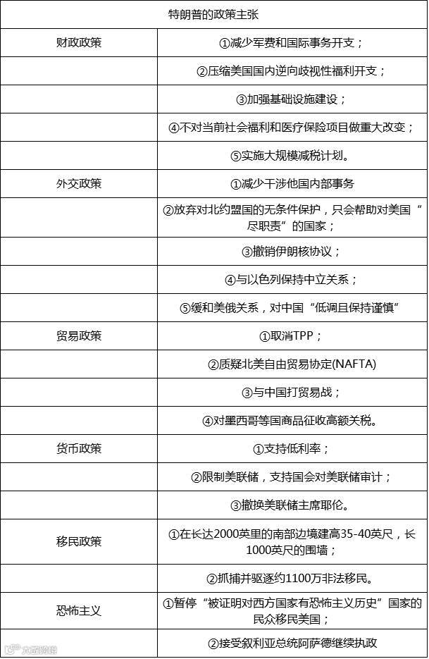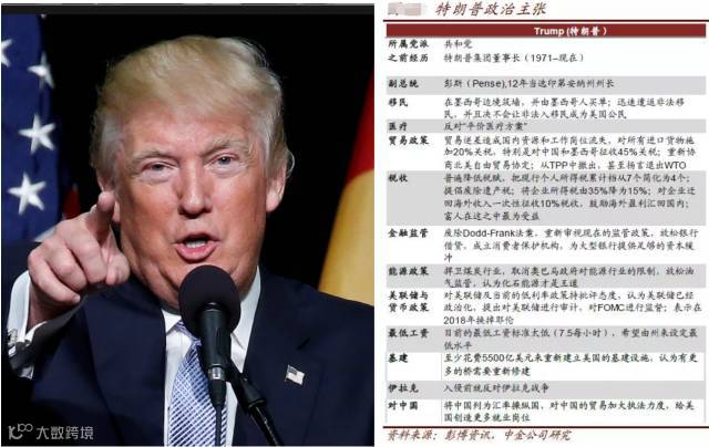 ▲特朗普及其政治主张(点击可放大) 图片来源:ibtimes,中金