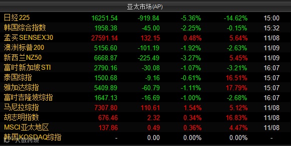 其中日经指数跌幅最大,跌幅超过5%,仅次于英国退欧(6月24日)当日7.92%的跌幅;韩国综合指数跌幅达2.25%;澳洲标普200指数下跌1.92%;雅加达综合指数下跌1.14%。上证综指收盘跌幅收窄,下跌19.52点。
