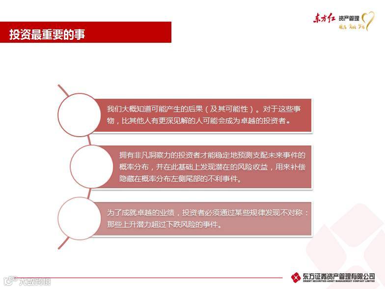 换言之,为了成就卓越的业绩,投资者必须(通过某些规律)发现不对称:那些上升潜力超过下跌风险的事件。这就是成功投资的全部。