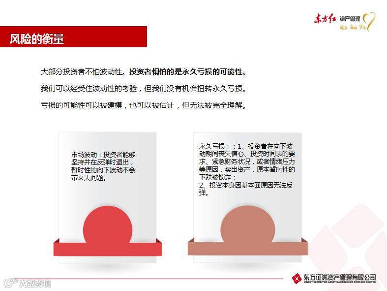 考量风险时,我们希望找出令投资者担忧、且因承担该风险而需要补偿的事情。我认为大部分投资者不怕波动性。事实上,我从未听过有任何人抱怨:“预期回报没有高到值得承担所有的波动。”投资者惧怕的是永久亏损的可能性。