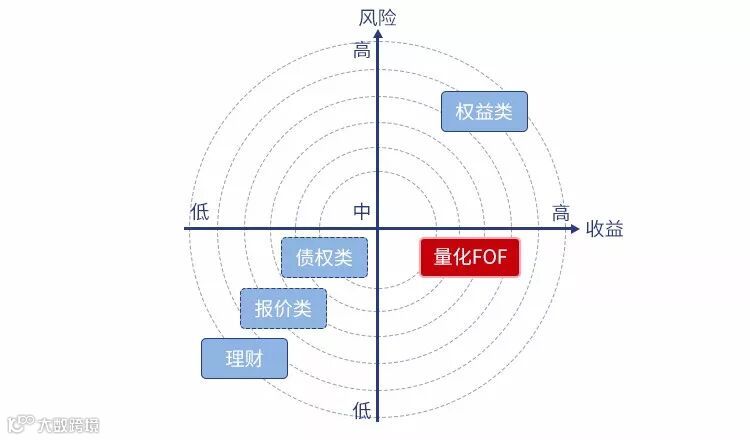 量化市场中性策略风险收益特征介于低风险、低收益产品(理财)和高风险、高收益产品(权益类)之间。量化FOF中高收益、波动较小,绝对收益特点突出,为投资者提供了高收益风险比的工具。
