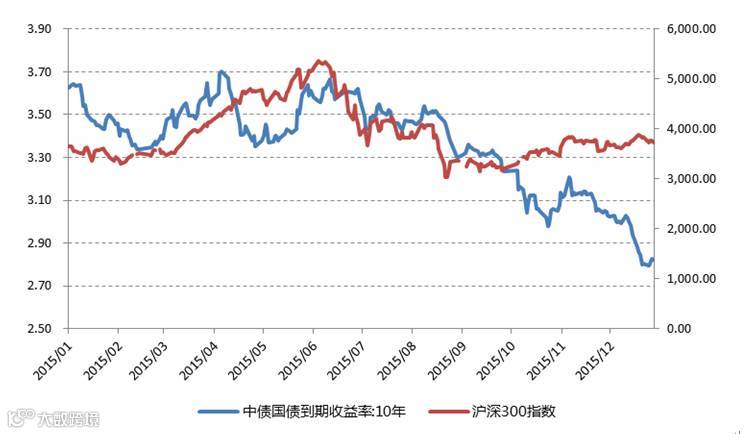 第二阶段,股市去杠杆,风险偏好迅速转化,债牛启动:6月中下旬,发生股灾,证监会清理配资、停止新股发行,相当于减少了类固收产品的供应,投资者风险偏好迅速转化,避险需求上升。资金开始涌入债券市场进行配置,收益率快速下行,进而倒逼理财产品收益率下行,负债端成本下降。机构的配置行为主导了整个下半年。10年期国债快速下行,而资金利率平稳,期限利差不断压缩,到2015年底,10年期国债已由年初3.6%的水平下行至2.8%的水平。