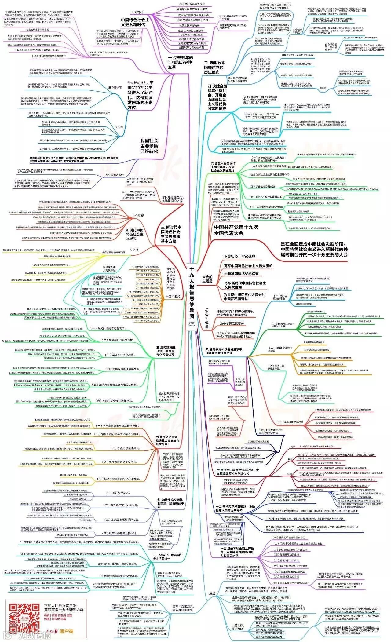 ,包含一系列新思想、新论断、新提法、新举措。人民日报客户端梳理绘制了一张十九大报告思维导图,一起来学习!