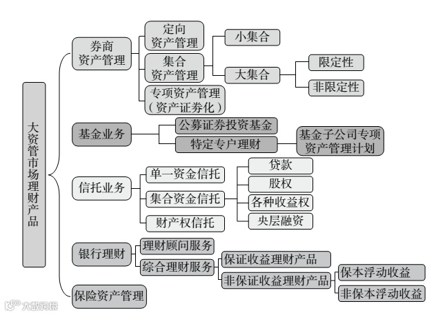 新型城镇化融资改革的关键是市场化。其中作为价格信号的利率市场化改革则是盘活整个市场的重中之重。而利率市场化是结果,需要金融改革来构建。要想实现利率市场化,最简单的方式便是增加资金的供给主体,降低资金供给的渠道成本。在传统融资结构之下,资金供给80%都来自于银行,资金供给有限,供给产品形式简单粗糙。推进利率市场化,引入资金供给主体,创新资金供给方式都成为可选方案。多层次资本市场、债券市场以及资产证券化都是对供给方式的创新,对应地,也将产生一系列各种形态的金融产品。城镇化的海量融资需求催生金融改革与金融创新,资产管理机构金融产品与服务的发展与繁荣活跃了资本市场,也极大程度上支持了城镇化的顺利进行。图1列出了大资管时代的多种业务类型。