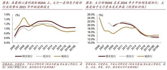 2)大银行未来几年的规模增速将不弱于小行,而ROA/ROE水平则将持续超出,由此大行平均估值应该存在明显溢价;