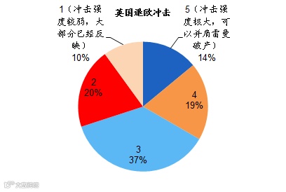 英国退欧公投是近年来最大的黑天鹅,将开启混乱模式,避险情绪短期内难以消退,避险资产和无风险资产将持续受益。再多的言语无法描述英国退欧公投结果给各类投资者留下的五味杂陈。如果上周五你没有因为压注英国退欧而暴富或者财务自由,那么接下来需要关注一下英国退欧可能产生什么后遗症,可能对自己产生什么负面影响。虽然市场很清楚退欧会对全球经济产生负面影响,但并不是很清晰其影响路径和影响程度。在退欧公投后,我们通过最新的调查问卷采访了债券投资者,询问大家关于如果将英国退欧和当年雷曼破产进行比较,其负面冲击程度如何?5为冲击程度最高,1为冲击程度较弱,结果大部分投资者选择了3,选择2和4的投资者较为接近,选择5和1的投资者相对少一些。即投资者认为英国退欧的影响相比于雷曼破产,负面影响还不会达到那么大。但正如退欧公投之前市场低估了退欧的可能性和实际影响,投资者可能也低估了英国退欧所可能产生的真正冲击。