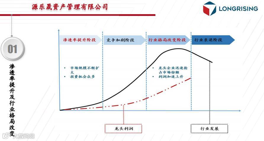 行业渗透度提升是投资中最容易赚钱的一个阶段,但中国目前只有少数几个行业仍有由此带来的投资机会,包括新能源汽车、光伏、风电等行业。