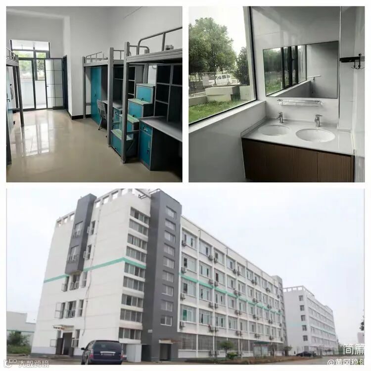 公司提供免费住宿,自营大小食堂。宿舍有空调、冷热水、有线电视、免费wifi、投币洗衣等。